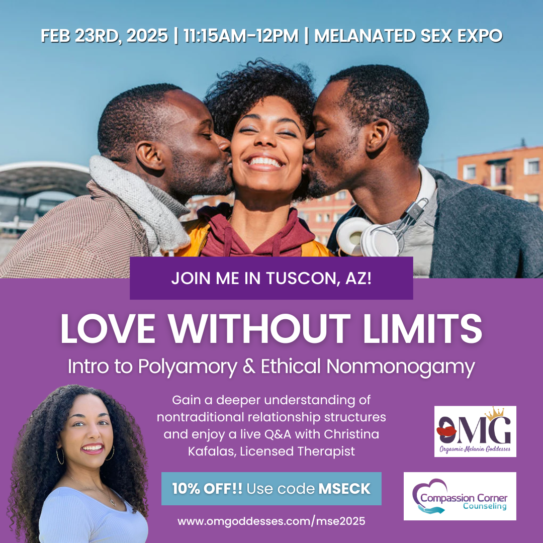 I'm thrilled to share that I'll be facilitating my Love Without Limits: Intro to Polyamory and Ethical Non-Monogamy workshop as well as a second surprise workshop at the 2025 Melanated Sex Expo!